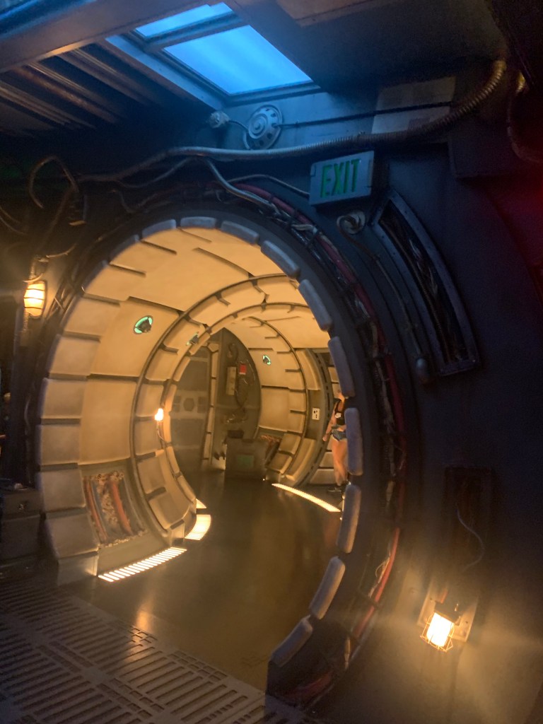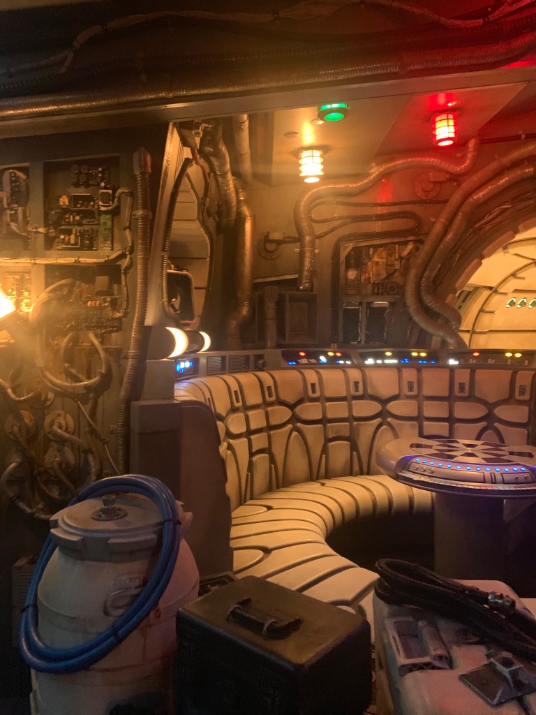 Millennium Falcon:Smugglers Run is one of my new favorite attractions at Walt Disney World. First of all, don’t let the appearance of a long line fool you. Most of the time, your wait is shorter than what appears at the front. The line is constantly moving and you never feel bored while waiting. There is so much detail to notice in the queue that your mind will be occupied. Once inside the ship your jaw will drop with shock as you have entered the legendary ship of the Star Wars saga. Take a minute and walk around, taking in your surroundings. There are so many hidden gems in that ship.