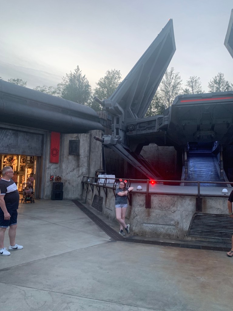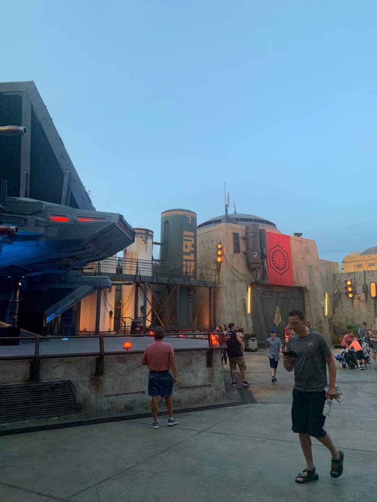 The theming is extraordinary. It felt deeper than the feeling that Cars Land illuminates. Guests really feel like they are transported into the movie. Disney kept their promise on the immersive aspect of the land. There are ships layed around the land, high rock formations, Storm Troopers roaming around, an area parading flags of the First Order, and (of course) The Millennium Falcon.