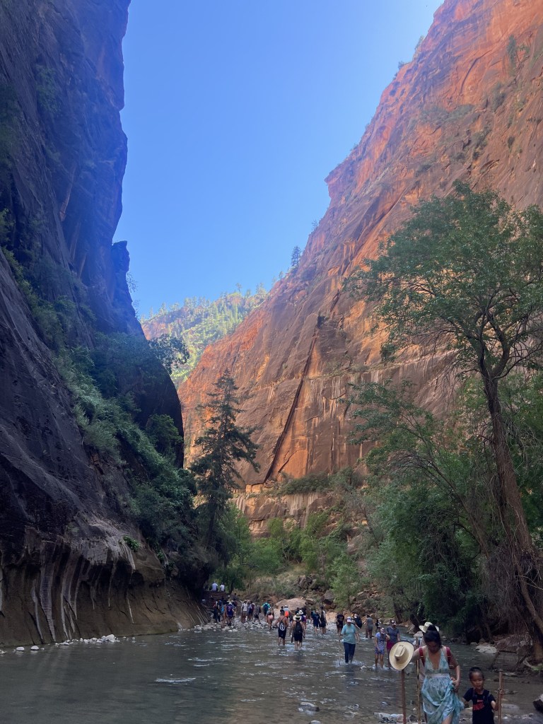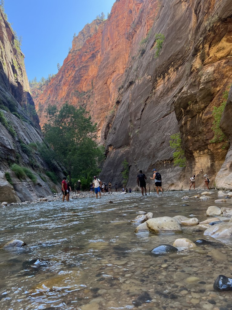 - Hike The Narrows, it is a water hike, the water isn’t too deep, it only goes up to your thighs. The entire hike will take about 6 hours, you don’t have to do the whole thing if you don’t want to. -> It’s a super fun hike